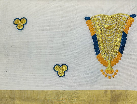 Flower bouquet embroidered Tissue cotton Saree Kerala Kuthampully Handloom 6.25 mtr